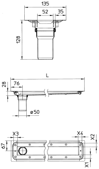 Blücher Waterline design afløb type 275 til vinylgulve Blücher Waterline type 275 - 700mm lang. Til fri placering i rummet.