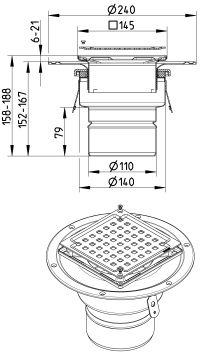 BLÜCHER Domestic-150 afløb for beton- og klinkegulve, med lodret Ø110mm udløb, med membranflange Se også relaterede varer herunder.  |