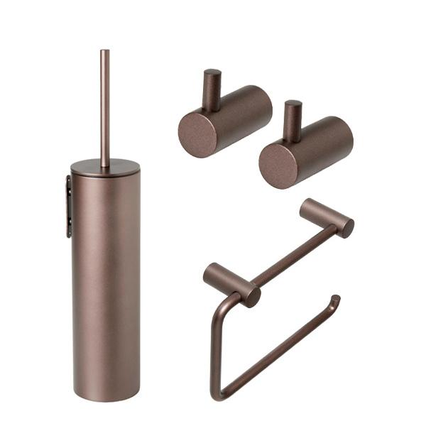 Cassøe tilbehørspakke til bad - Mat bronze OBS: Varen er på lager - både til afhentning og dag-til-dag levering. Indret badeværelset med tilbehør i flot mat bronze. mat bronze er et spændende og varmt alternativ til den ellers populære messing, hvor den står særligt flot sammensat med træ og natursten. Mat bronze er den perfekte farve til at bringe varme ind i et ellers køligt rum og et anderledes valg til det unikke badeværelse. Denne pakke indeholder: