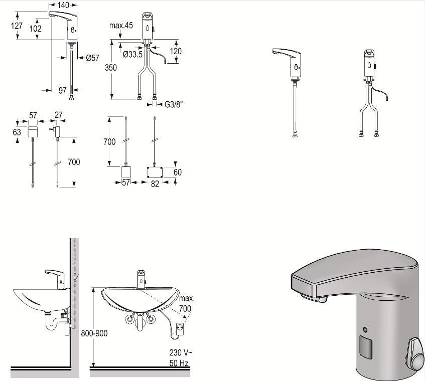 Iqua M10 berøringsfri håndvaskarmatur med 6V berøringsfri til koldt og varmt vand i forkromet overflade Flexslanger med 3/8" omløbere Vandhanen er med mange indstilningsmuligheder. Bl.a. afstand, vandmængde, tvangsskylning hver 24 time (Legionella-sikring), pausefunktion ved rengøring af vask m.m.  |