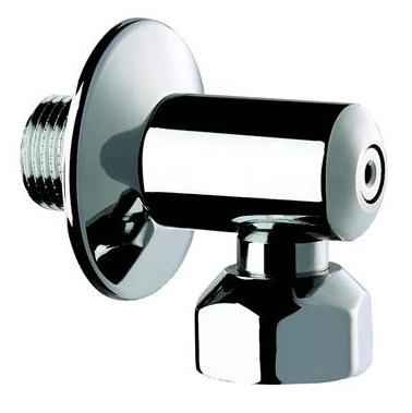 Vinkelforskruning med afspærring med 1/2" udvvendigt rørgevind x 3/4" omløber.