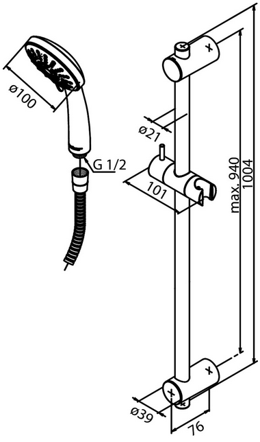 Fair Jet Flex Extended Brusersæt med justerbar bruserstang