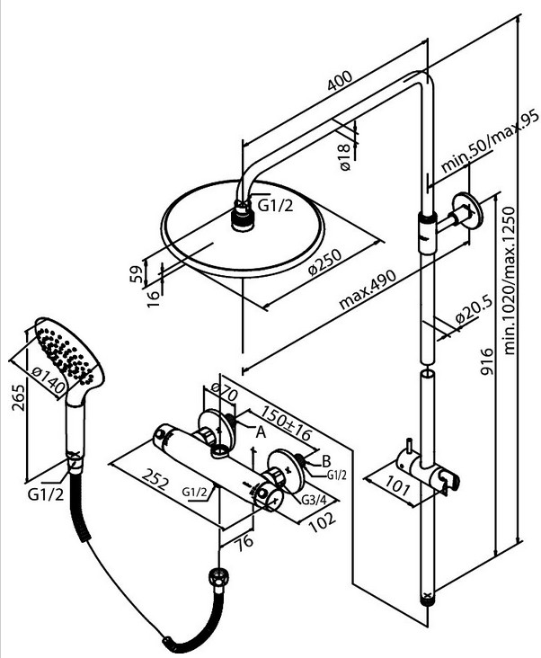 Damixa Bell brusersæt inkl. termostatbatteri og hoved- samt håndbruser
