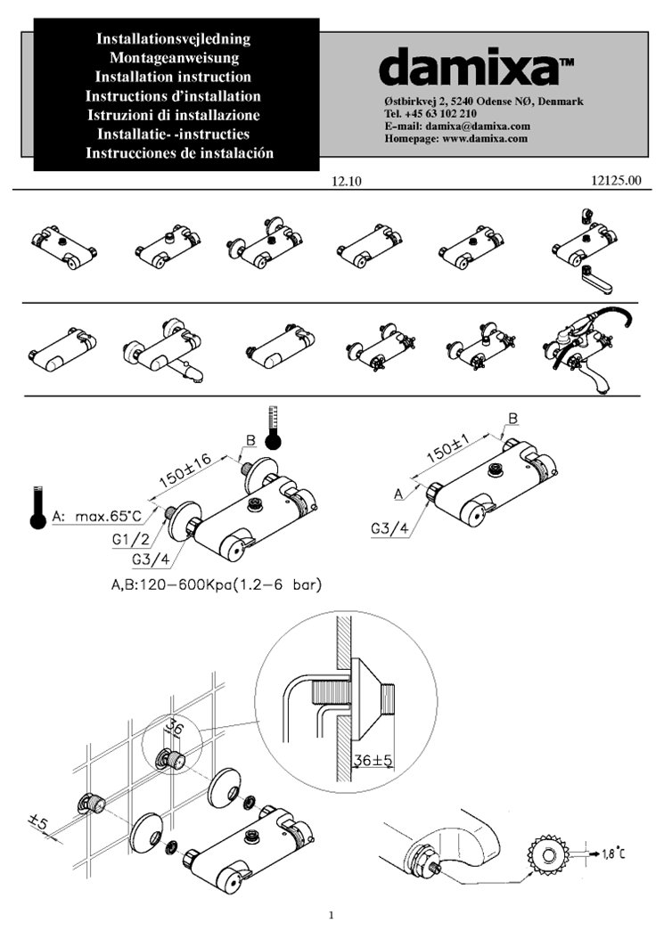 Damixa TMC brusetermostat - Krom/sort Damixa Termostatbatterier badetermostat TMC model 27450, excl. rosetter forskruninger. Sorte greb. Specifikationer: