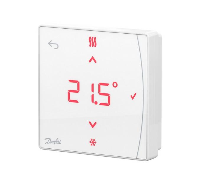 Danfoss Icon2 trådløs rumtermostat m/display Trådløs termostat med værktøjsfri installation. Med display for visning og indstilling af temperatur I rummet. Yder præcis rumtemperaturregulering, samt indeklimaovervågning med fugtsensor. Specifikationer: