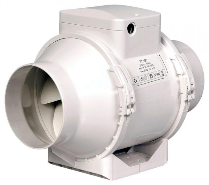 Duka EL 100 TT kanalventilator Kanalventilator til indbygning i loftsrummet direkte i ventilationskanalen. Er meget velegnet til varmeflytningsystem. Det anbefales at fastgøre ventilatoren med montageklemmer (som købes separat), så den kraftige motors vibrationer ikke overføres til ventilationskanalen. Ventilatoren har to trin, og kan reguleres enten via to faser direkte gennem en kontakt på enten 145 eller 187 m3/h.  |