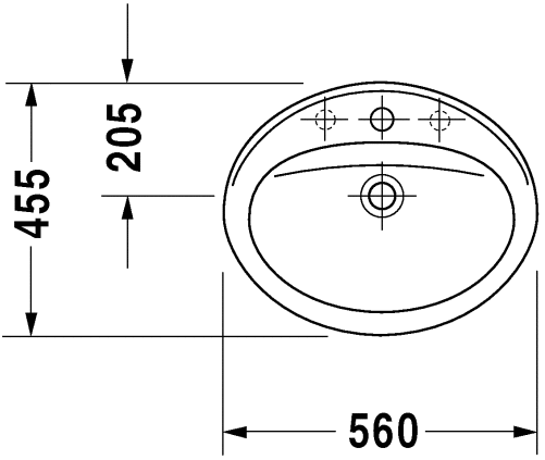 Duravit Duraplus håndvask til nedfældning. Med hanehul og overløb.