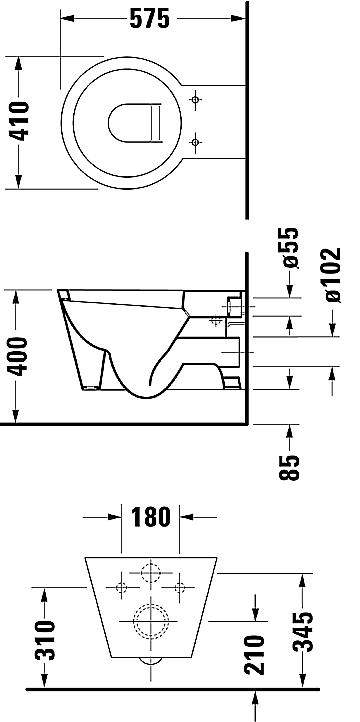 Duravit Starck 1 væghængt toilet Vægmonteret hængetoilet. Inkl. Durafix fastgørelse.