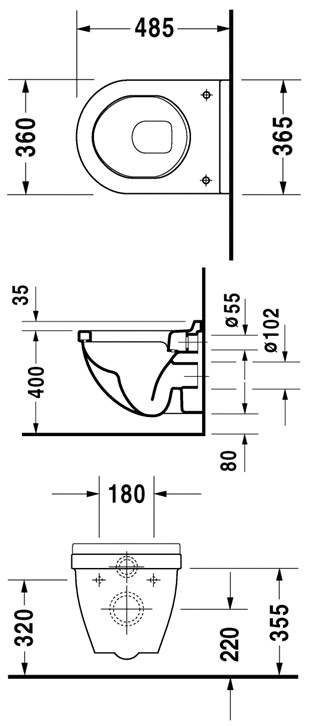 Duravit Starck 3 Compact væghængt toilet Denne hængeskål er super flot og med Duravit´s høje kvalitet er det helt sikkert en hængeskål du bliver glad for. Skålen har nogle flotte og enkle linjer der gør at den passer til alle stilarter, både den minimalistiske stil og den mere romantiske stil, samtidig er den er meget rengøringsvenlig, netop pga. de enkle linjer. Du kan også få denne hængeskål med wonderglis Det er et ekstra lag glasur der gør skålen meget mere modstandsdygtig overfor snavs og kalk. Skålens flotte finish bevares ved blot ved almindelig rengøring. Du finder den under varianter (ved siden af billedet). Der er flotte sæder der passer til denne skål. Dem finder du under relaterede varer. Her finder du også de andre ting der skal bruges til en komplet løsning med en hængeskål, nemlig indbygningscisterner og trykknapper dertil. Leveres uden befæstigelse. Montage på eksisterende indbygget cisterne: