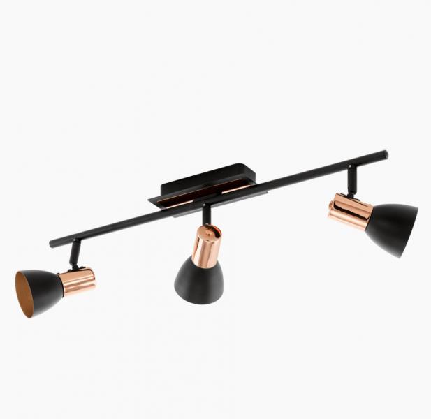 EGLO BARNHAM SPOT LED 3X3,3W KOBBER/SORT ; MÅL: L:585 B:70 ; FATNING: GU10-LED ; MAX WATT: 3 X 3,3W ; INKL. LYSKILDE