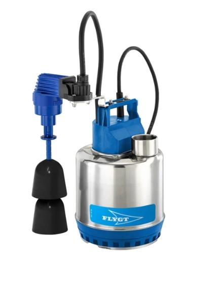 Flygt pumpe SXM 2 GW med 1.1/4" muffe og 10 m kabel, 230 V Flygt SX GW dræn- og lænsepumpe med niveauflyder-enhed, kan udpumpe gråt spildevand fra vaskemaskiner, vaskekældre osv. med partikler op til 10 mm.