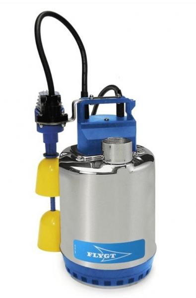 Flygt pumpe SXM 3 GW med 1.1/4" muffe og 10 m kabel, 230 V Dræn- og lænsepumpe med niveauflyder-enhed, som kan udpumpe gråt spildevand fra bla. vaskemaskiner, vaskekældre , med faste partikler op til 10 mm.