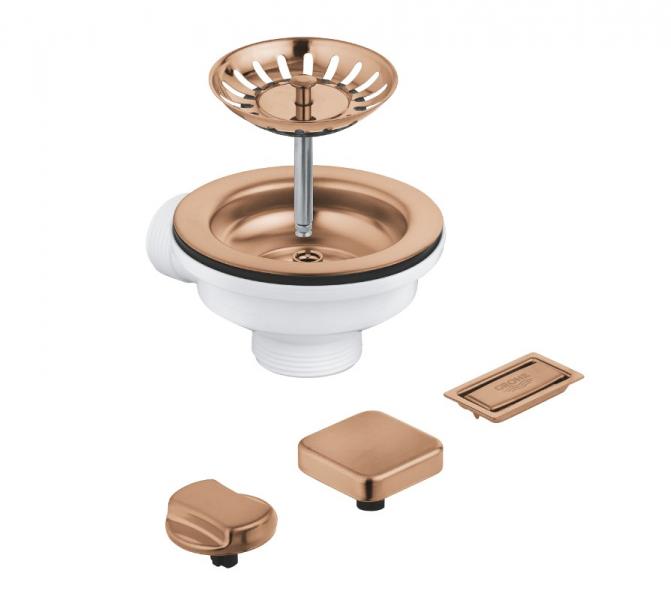 Sæt prikken over i'et og match dit afløb og excenterbetjening med dit Grohe køkkenarmatur i børstet warm sunset.
