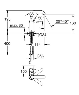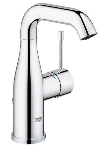 GROHE Essence håndvaskarmatur med mellemhøj svingtud Med den blanke GROHE StarLight® belægning fanger dette flotte badeværelsesarmatur i GROHE Essence sortimentet øjets opmærksomhed, samtidig med at det er utrolig funktionelt: Proppen, der er fastgjort til den forsænkningsbare kæde, forsvinder ud af syne bag etgrebsarmaturet. Den mellemhøje svingtud gør det nemt at fylde høje beholdere. Takket være GROHE WaterSaving® systemet vil dit vandforbrug aldrig overstige 5,7 liter/minut, selv ikke ved fuld volumen. Vandtemperatur og -mængde kan justeres jævnt og uden besvær takket være GROHE SilkMove® teknologien. Med GROHE QuickFix® Plus systemet kan armaturet installeres nemt og hurtigt uden problemer, og den blanke glans vil øjeblikkeligt tilføre dit badeværelse nyt liv.