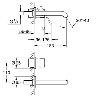 Dette vægmonterede 2-huls-badeværelsesarmatur fra GROHE Essence sortimentet har et rent og elegant design. En separat tud med en længde på 183 mm sikrer maksimal komfort og gør det muligt for dig at vaske hår over håndvasken og nemt og hurtigt fylde høje beholdere med vand. Med cylindriske former og en blank GROHE StarLight® krombelægning vil dette vægmonterede etgrebsbatteri være et flot højdepunkt i dit badeværelse. De praktiske funktioner omfatter også den vandbesparende GROHE EcoJoy® teknologi. Tudens strålevinkel kan justeres præcist med den integrerede AquaGuide. For at installere dette armatur skal du købe den tilhørende GROHE indbygningsdel (32635000). Vandmængde og -temperatur kan styres jævnt og ubesværet med GROHE SilkMove® patronen, der er integreret i indbygningsdelen. Specifikationer: