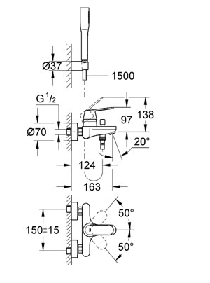 Smart etgrebs badekararmatur med slank håndbruser fra Grohe. Denne løsning giver dig nem regulering af både vandstrøm og vandtemperatur med armaturets ene greb, der glider trinløst. På armaturets kartud sidder omskifteren, hvormed du skifter mellem karudløb og håndbruser helt problemfrit. Med håndbruseren skyller du nemt shampoo ud af håret eller rengør både hund og badekar. Med SpeedClean kan du nemt med en finger gnide eventuel kalk af dyserne og sikre, at håndbruseren altid virker optimalt. Både kararmatur og håndbruser er belagt med Grohe's Long-Life Shine krombelægning, som er slidstærk og ekstra holdbar. Den kan både tåle at blive brugt og blive gjort ren. Med Grohe Eurosmart Cosmopolitan badekararmatur er du sikret en både stilmæssigt og funktionelt holdbar løsning, som vil give dig god komfort i mange år. Specifikationer: