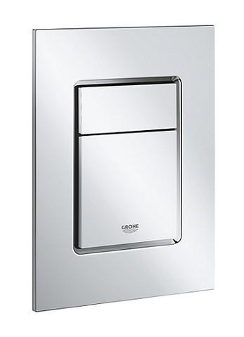 Grohe Skate Cosmopolitan betjeningsplade S - Krom Denne GROHE Skate Cosmopolitan trykplade er den perfekte prik over i'et i ethvert smart og moderne badeværelse. Den lille størrelse (130 x 172 mm) er ny i denne serie og sikrer, at du har mulighed for at vælge det helt rigtige til dit badeværelsesdesign. Med en skinnende GROHE StarLight belægning, der er ridsefast og nem at rengøre, har vægpladen en glans, der holder gennem hele produktets levetid. Og så er det også miljøvenligt. Systemet med dobbeltskyl gør det muligt at vælge en skyllemængde på 3 eller 6 liter (eller 3 og 4,5 liter i visse keramiske kummer), og det er muligt at stoppe et fuldt skyl med en lille knap. Den integrerede GROHE EcoJoy skylleteknologi reducerer desuden dit vandforbrug med op til 50 %! Installationen, der kræver en tilknyttet inspektionsskakt (40 911 000), er enkel og værktøjsfri. GROHE Skate Cosmopolitan trykpladen – en opgradering til badeværelset, der balancerer elegant moderne stil med ydeevne, som du kan stole på!