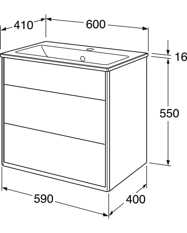 Graphic har lidt slankere mål end de fleste andre badeværelsesmøbler. Designet er baseret på grafiske former og mål, der gentager sig.