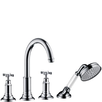 Hansgrohe Axor Montreux 4-huls karbatteri til montering i flisekant. Med secuflex slangegarniture. Gennemstrømningsmængde: 23 l/min. Monteres med indbygningsdel 15481180 Specifikationer: