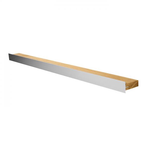 Lang gallerihylde fra Hoigaard i en kombination af massivt træ og aluminium.