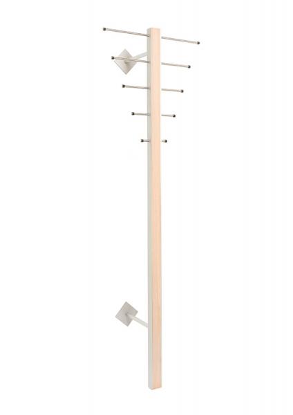 Hoigaard ST-1 stumtjener - Eg/sæbe Hoigaards ikoniske stumtjener monteres på væggen og er en stilfuld opbevaringsmulighed til overtøjet. Stumtjeneren monteres med to arme på væggen, men disse er nærmest usynlige, når stumtjeneren først er monteret. Overtøj og tasker kan hænges på 5 knager på hver side. Ikke nok med at stumtjeneren er praktisk, så er den også en spændende, designmæssig tilføjelse - der naturligvis går godt hånd-i-hånd med resten af Hoigaards sortiment. Stumtjeneren er lavet af en kombination af massivt træ og eloxeret aluminium, hvor knagerne/stængerne er af rustfrit stål. Specifikationer: