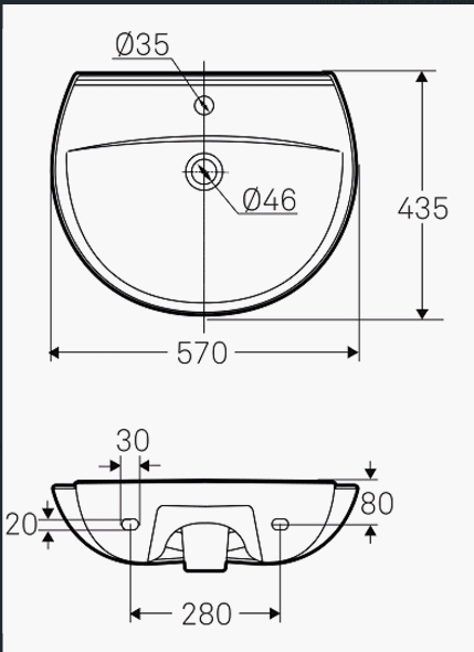 Ifö Spira 57 håndvask t/væg - 1 hanehul - Ifö Clean Håndvask med afsætningsplads på bagerste del af vasken. Fremstilles også uden overløbshul og hanehul, hvilket giver enklere rengøring. Monteres med bolte. Håndvasken er behandlet med Ifös rengøringsvenlige glasur Ifö Clean og godkendt i henhold til Nordic Quality. Specifikationer: