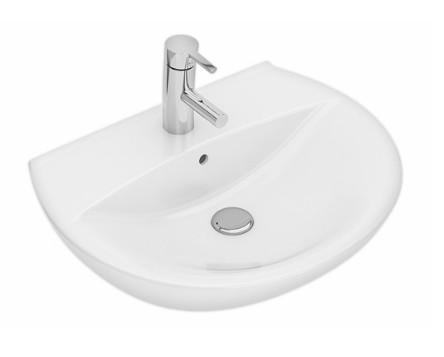 Ifö Spira 60 buet håndvask t/væg - 1 hanehul - Ifö Clean Håndvask med afsætningsplads på bagerste del af vasken. Fremstilles også uden overløbshul, hvilket giver enklere rengøring. Monteres med bolte. Håndvasken er behandlet med Ifös rengøringsvenlige glasur Ifö Clean og godkendt i henhold til Nordic Quality. Design Knud Holscher. Specifikationer: