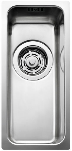 Enkeltvask med strainer. Leveres med vandlås. For underlimning. |