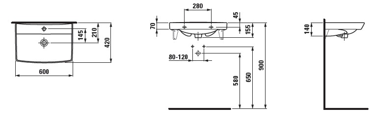 Laufen Pro-N 60 håndvask t/væg eller møbel - 1 hanehul