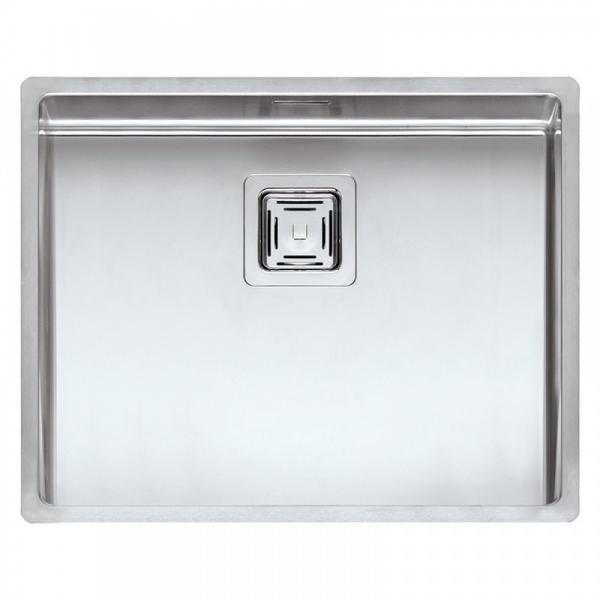 Rustfri stålvask, uden hanehul, i moderne firkantet design med kvadratisk afløb.