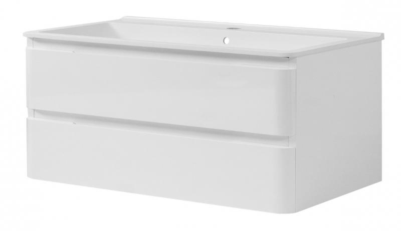 Stilrent badmøbel i moderne mat hvid, med integreret greb samt afrundede kanter.