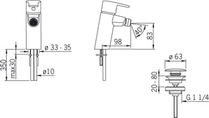 Oras Cubista bidetbatteri med push-up bundventil. Nyt innovativt og stilrent design fra Oras. Specifikationer: Højde (til tud): 83 mm Tudlængde: 98 mm