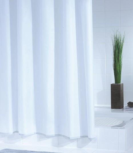 Ridder Eco Vinyl badeforhæng - 120 x 200 cm - Hvid Dette hvide badeforhæng er produceret i vinyl, og det fremstår enkelt og elegant på badeværelset. Der er syet et bånd ind nederst på badeforhænget, således at det falder pænt og er behageligt at bruge i badet. Derudover kan badeforhænget vaskes i vaskemaskinen ved op til 60 grader, og det kan herefter stryges ved lave temperaturer.