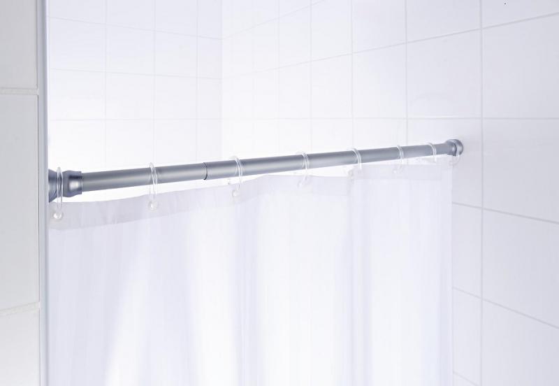 Denne teleskopstang bruges på badeværelset til ophæng af badeforhæng. Stangen er produceret i aluminium i en kromfarvet finish med hvide ender af plastik. Vægbeslagene for enden af teleskopsstangen er udstyret med en anti-slip funktion. Teleskopstangen er fleksibel, da den er justerbar i længden, så den passer til dit badeværelse.