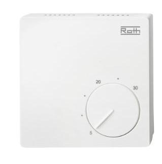 Roth Basicline standard fortrådet rumtermostat Standard rumtermostaten anvendes på gulvvarmeanlæg hvor der ønskes en trådført og enkel regulering.