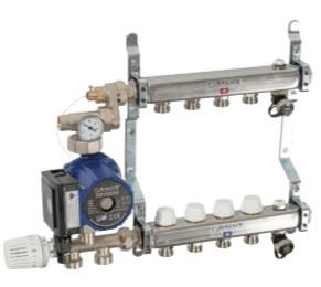 Salus komplet trådløs gulvvarme pakke til 1 kreds. 24 volt. Kan styres via app til Iphone og Android Billedet viser 4 kredse. Består af: Salus gulvvarmeshunt Salus fordelerrør med udluftning og aftapning Salus 20 mm koblingssæt 2 styk Salus kontrolenhed 8 kanaler Salus termomotor 24 volt Salus rumtermostat Salus Gateway  |