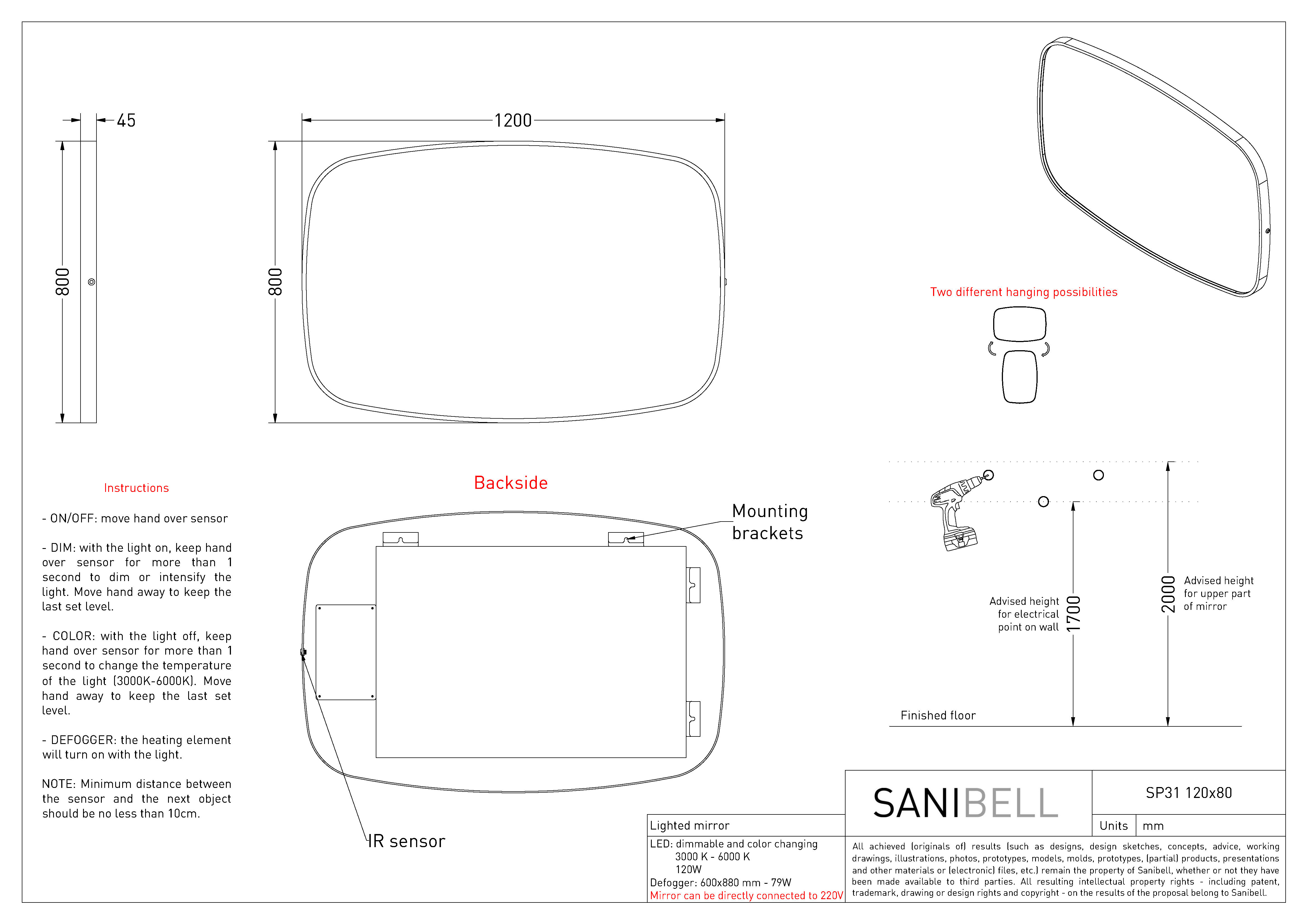 Sanibell Ink SP31 spejl m/lys, varme og sensor 120 x 80 cm - Mat hvid Superellipse-formet spejl fra Sanibell Ink med indbygget lys i rammen. Det eksklusive spejl har desuden indbygget memory funktion, så det husker forrige indstilling. Juster både lysets farve og styrke ved hjælp af den smarte touch-free sensorkontakt. Når du vælger dette spejl, kan du uden problemer bruge dit spejl, selv efter et langt, varmt bad, for spejlet har indbygget varme og er derfor dugfrit. Det rektangulære spejl kan vendes, og dermed monteres både lodret og vandret. Spejlet leveres i 6 flotte farver, så du kan fuldende indretningen på badeværelset med et spejl, der matcher både vandhane og badtilbehør. Specifikationer: