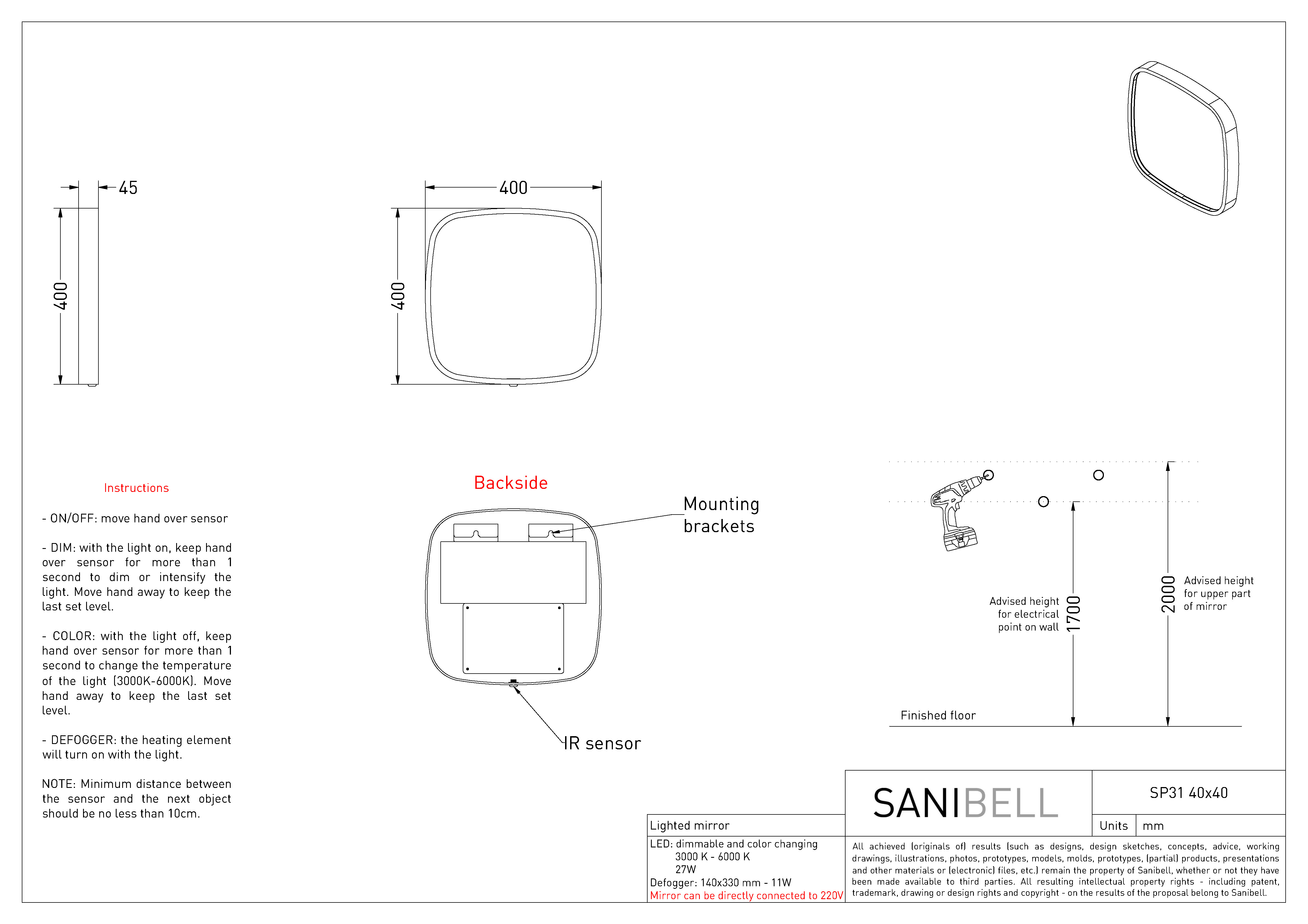 Sanibell Ink SP31 spejl m/lys, varme og sensor 40 x 40 cm - Gunmetal Superellipse-formet spejl fra Sanibell Ink med indbygget lys i rammen. Det eksklusive spejl har desuden indbygget memory funktion, så det husker forrige indstilling. Juster både lysets farve og styrke ved hjælp af den smarte touch-free sensorkontakt. Når du vælger dette spejl, kan du uden problemer bruge dit spejl, selv efter et langt, varmt bad, for spejlet har indbygget varme og er derfor dugfrit. Spejlet leveres i 6 flotte farver, så du kan fuldende indretningen på badeværelset med et spejl, der matcher både vandhane og badtilbehør. Specifikationer: