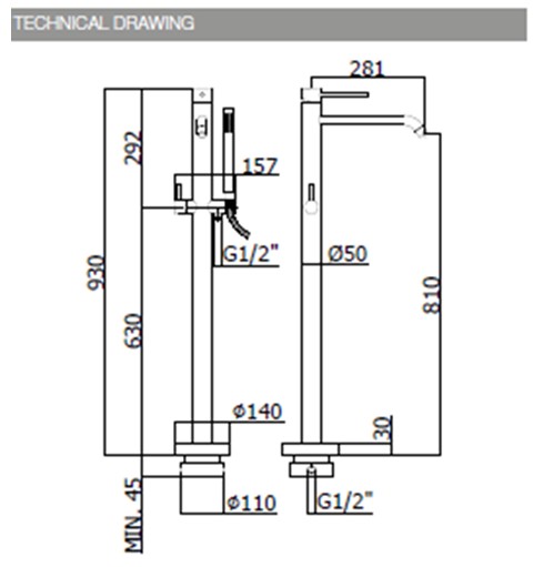 Strømberg Ligro 1-grebs fritstående kar/bruserbatteri i krom med bruserslange og håndbruser.  |