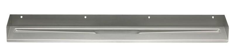 Afløbsarmaturet har tre vægflanger og en gulvflange, og er formgivet ud af et stykke kraftigt 1,5 mm rustfrit stål med bejdset overfladefinish.