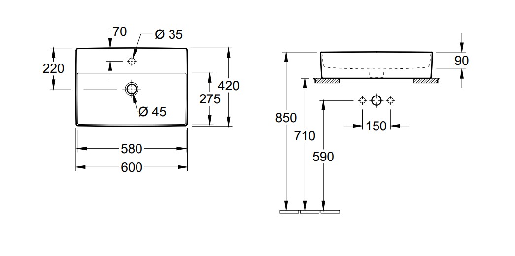 V&B Memento 2.0 60 fritstående bowlevask - 1/3 hanehuller OBS: Varen er på lager - både til afhentning og dag-til-dag levering. Rektangulær bowlevask fra Villeroy & Boch med fine, slanke kanter. Her har du både mulighed for at anvende almindelig vandhane og vandhane til 3 hulsmontering. Bundventil medfølger ikke - se relaterede produkter.