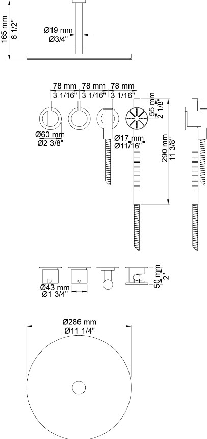 Vola 2471S-061A-16 Komplet brusesystem til indbygning - Krom