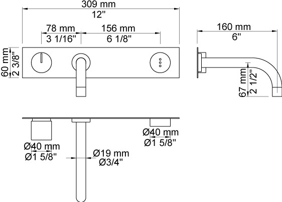 Vola Indbygningsblander til berøringsfri betjening Dækplade Krom 16 ½''RG  |