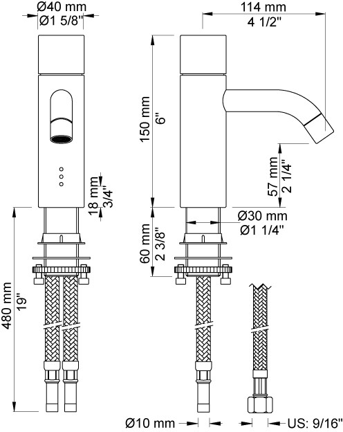 Vola Elektronisk blander med fast tud, standard udlæg, Elektronisk uden pind Net Krom 16 SPX/240V  |