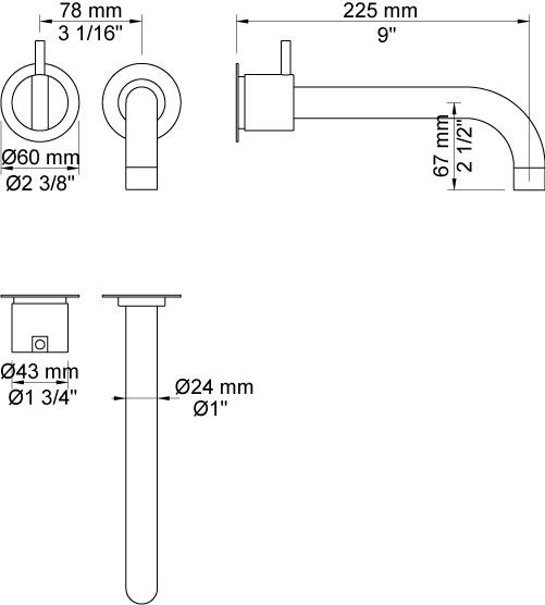 Vola Et-grebsblander for stor vandmængde med keramisk ventilenhed og fast afgangsmuffe Fast udløb, 225 mm, ø24 mm Krom 16 ½''RG/PEX