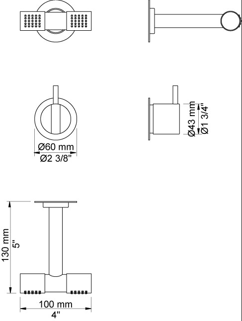 Vola Et-grebsblander for stor vandmængde med keramisk ventilenhed og løs afgangsmuffe Dobbelt hovedbruser, 115 mm Rosetter Børstet krom 20 ½''RG/PEX |
