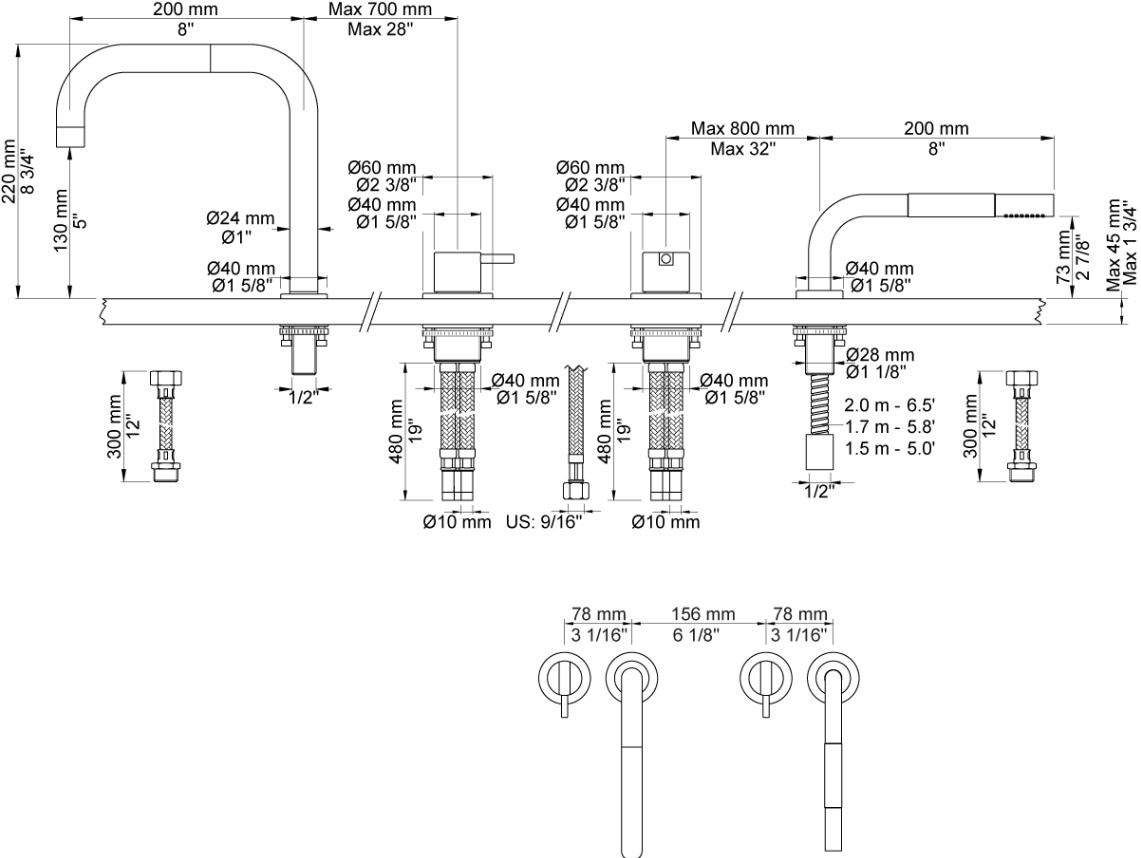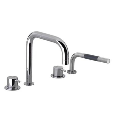 Vola Et-grebsblander SC10 med 360° dobbelt svingbar tud og et-grebsblander med håndbruser Dobbelt svingbar udløb, 200 mm, ø24 mm Krom 16 SPX  |