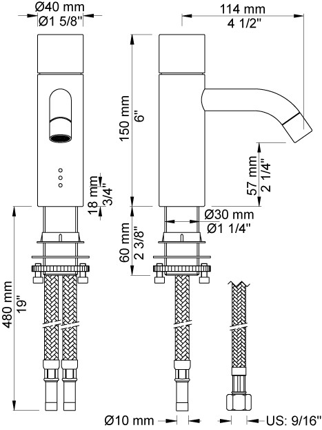 Vola HV1E berøringsfri håndvaskbatteri - Krom