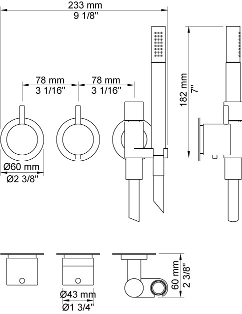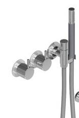 Vola Indbygningstermostat med fast afgangsmuffe T2 håndbruser med metalslange og holder til højre Rosetter Krom 16 3/4''RG/PEX