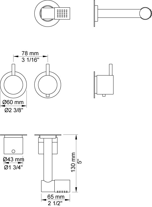 Vola Indbygningstermostat med løs afgangsmuffe Hovedbruser, 115 mm Krom 16 3/4''RG/PEX